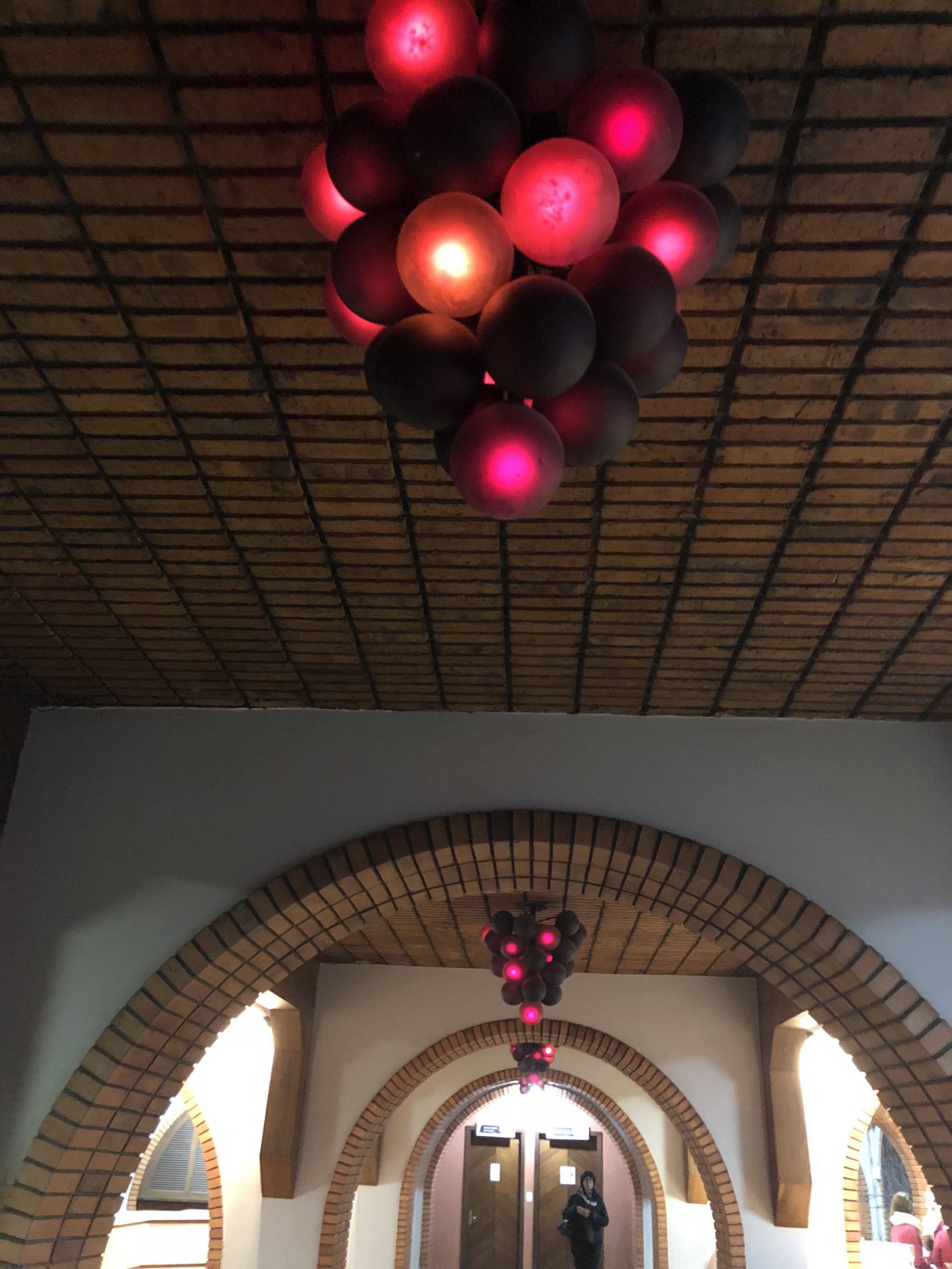 As we explored the massive cellars, I was pleased to see many tour groups, as well as magnificent golden statues of Bacchus and grape chandeliers.