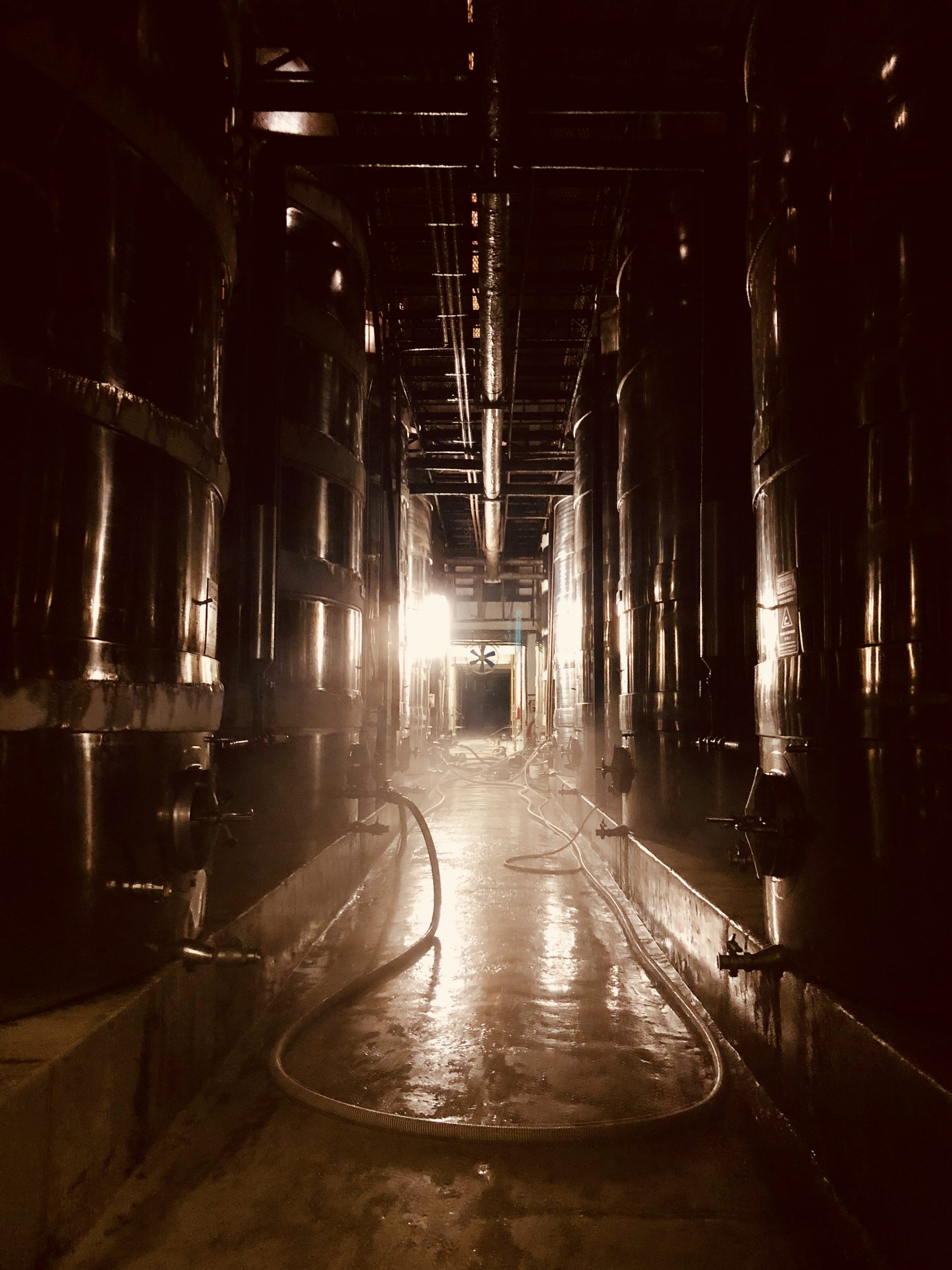 We were honored to have head winemaker, Flavio Zilio, export manager, Rosana Pasini, and enologist, Vitor Mizevski, escort us on a private tour through the massive cellars. The tanks were so tall in some rooms, that it seemed as if we were walking through a forest of giant trees. They had also maintained a museum of their original wooden tanks made from brazilwood, though they no longer use them to age wine.