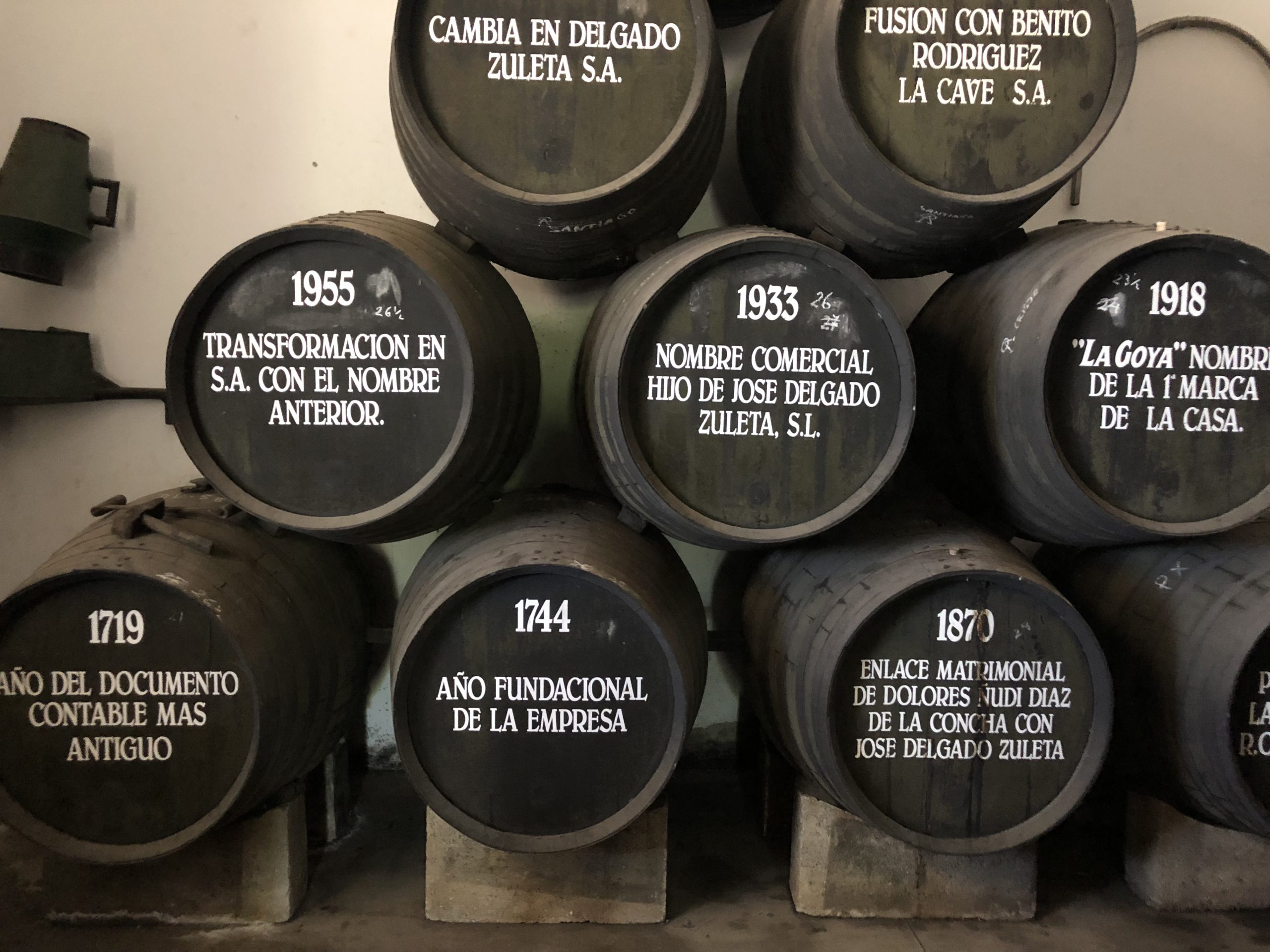 (June 2018) Bodega Delgado Zuleta is located on the outskirts of Sanlucar, Spain in an industrial area with plentiful parking. They are one of the largest sherry wineries in Spain, and are the producer of the famous La Goya Manzanilla brand. Their partner winery, Barbiana, is also housed at this complex. Established in 1744, the winery has over 1,000 hectares of vineyards, and produces millions of bottles of wine each year.