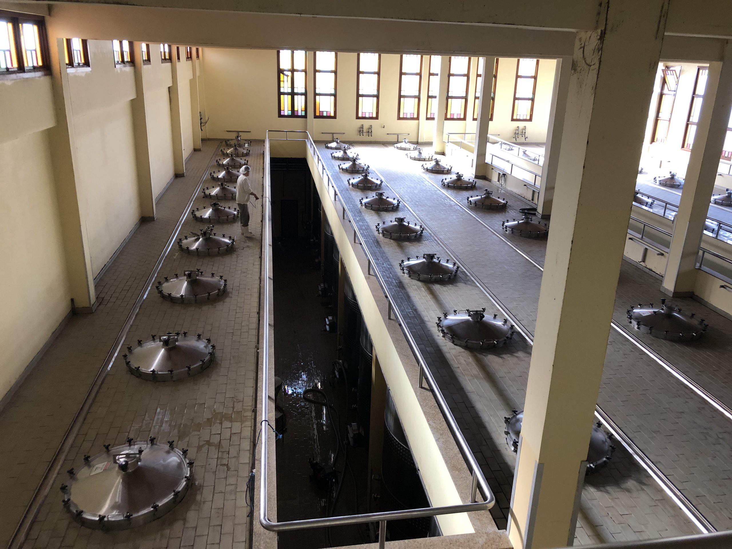 (June 2018) The first view of Miolo Winery almost takes your breath away. It seems like a fairytale winery with its impressive gates and tall tower, all nestled amongst flowing vineyards and sleeping mountains filled with fog. I took this photo of Miolo Winery from my hotel room on the first morning of my visit to Brazilian wine country. Since I arrived late at night, I had no idea what I would see when I opened the curtains in the morning, but this was the view. At the time, I didn’t know it was Miolo Winery, but was very pleased to learn I would visit it the following day.